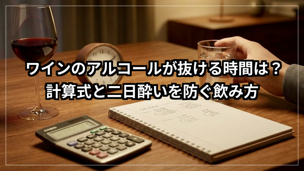 ワインを飲んだあと、 「明日の朝は運転できる?」「仕事に影響しない?」と不安になった経験はありませんか? 感覚や経験だけで判断してしまうと、思わぬリスクにつながることもあります。 実は、ワインに含まれるアルコールが体から抜けるまでの時間は、... -